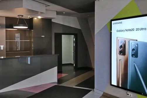 Рекламная кампания нового супермощного смартфона от Samsung в бизнес-центрах Беларуси.