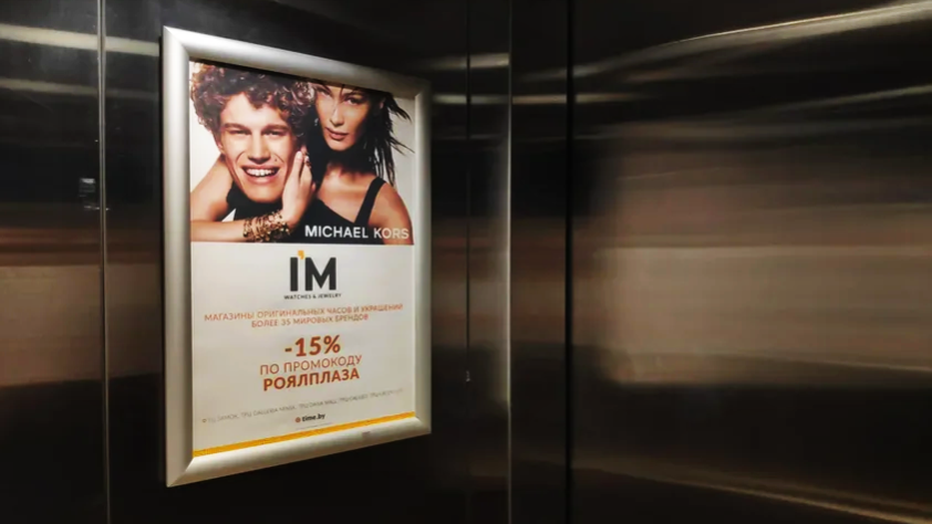 кабины лифтов бизнес-центров и административно-офисных зданий в Минске и областных центрах. Кабина лифта представляет собой замкнутое пространство, в котором каждый посетитель офисного центра проводит достаточное количество времени, чтобы ознакомиться с содержанием предложенной рекламной информации.