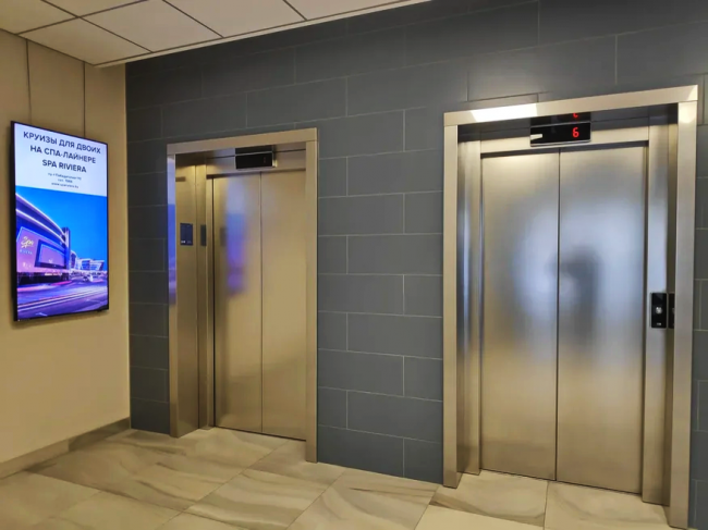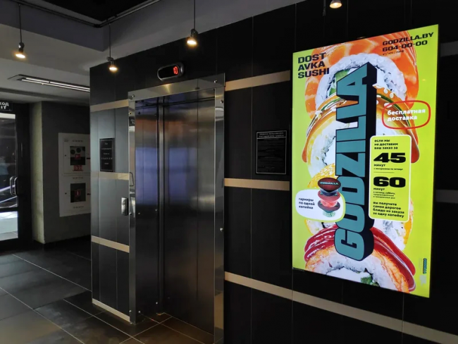 Рекламная кампания сети брендовых магазинов «Модный Молл» в бизнес-центрах Минска.