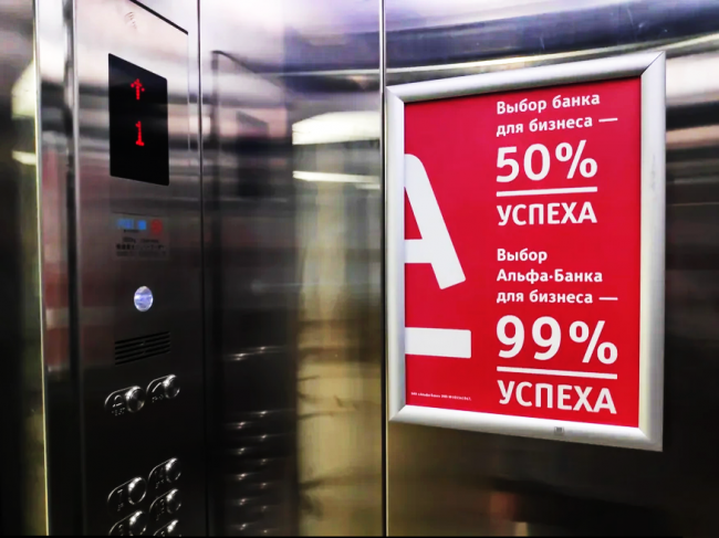 Рекламная кампания нового продукта для юридических лиц от Альфа-Банк в бизнес-центрах Беларуси.