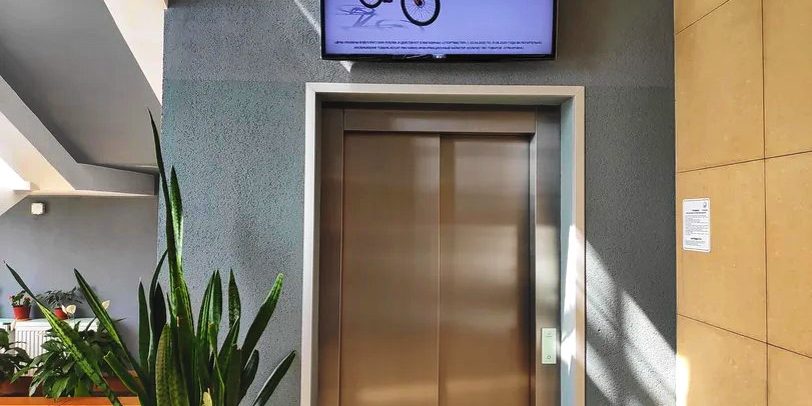 кампания велосипедов от сети магазинов «Спортмастер» в бизнес центрах LCD-media. Для